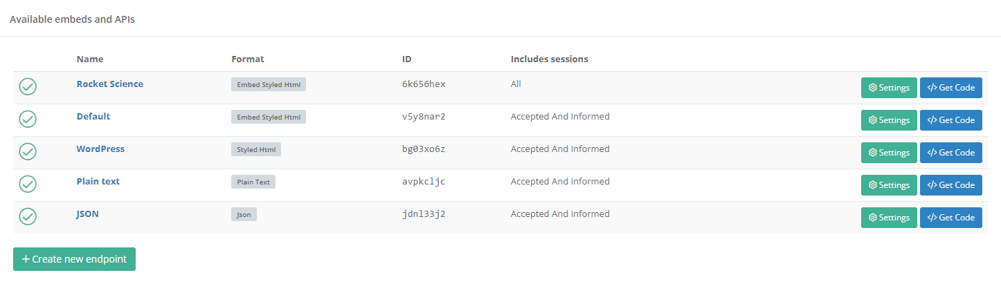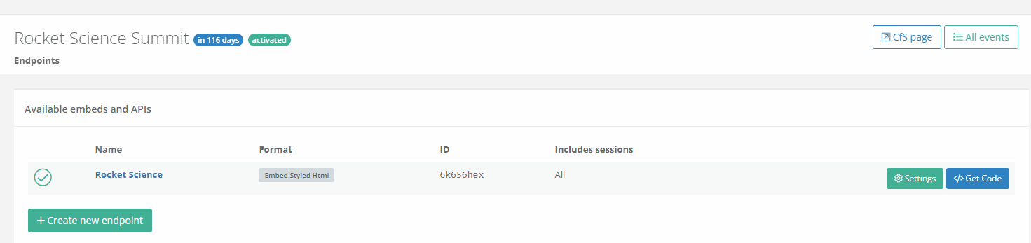 You can use an unlimited number of API / Embed endpoints for each event. Each endpoint can have its own settings and options.