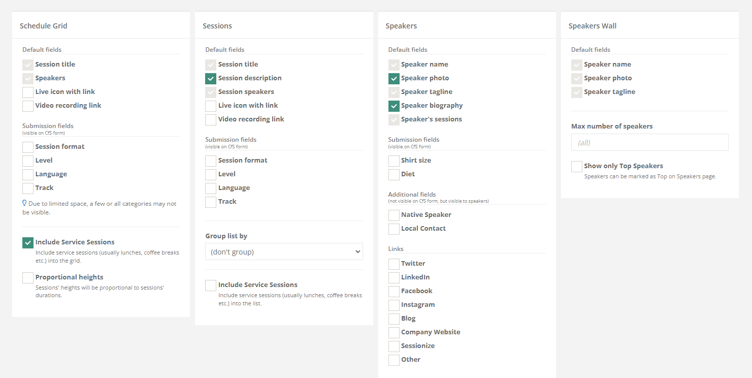 Troubleshooting I don't see sessions or speakers Please check the Includes sessio