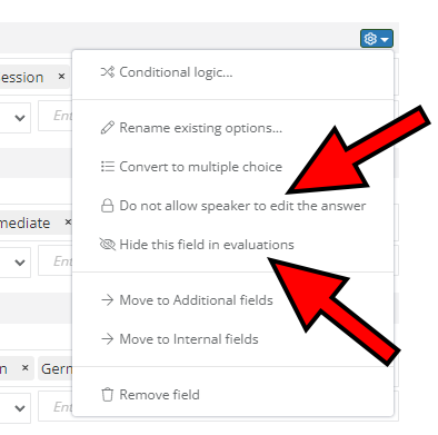 When using single or multiple-choice fields, your speakers aren't able to enter their own answers. They can only select the ones you entered when creating such fields.