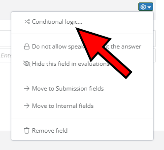 Using our Conditional logic system gives you even more control of the fields you're adding. You can have any of your fields show up or not depending on the answer in another field it's conditionally connected to. To use Conditional logic, click on the cog icon in the corner of the field's header and select Conditional logic.