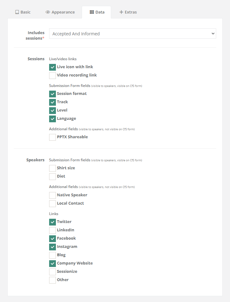 - Choose which session and speaker data fields you want to share