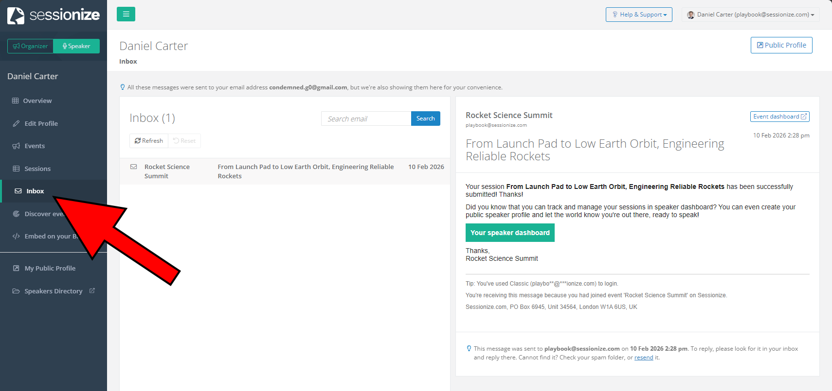 Event organizers use this to communicate important information about your submission status, event schedules, technical requirements, travel details, and other critical updates. Make sure the email address in your profile is one you check regularly, as you'll receive all these messages there too. If you miss important messages from organizers, you might miss deadlines, schedule changes, or other crucial information about your participation in an event.