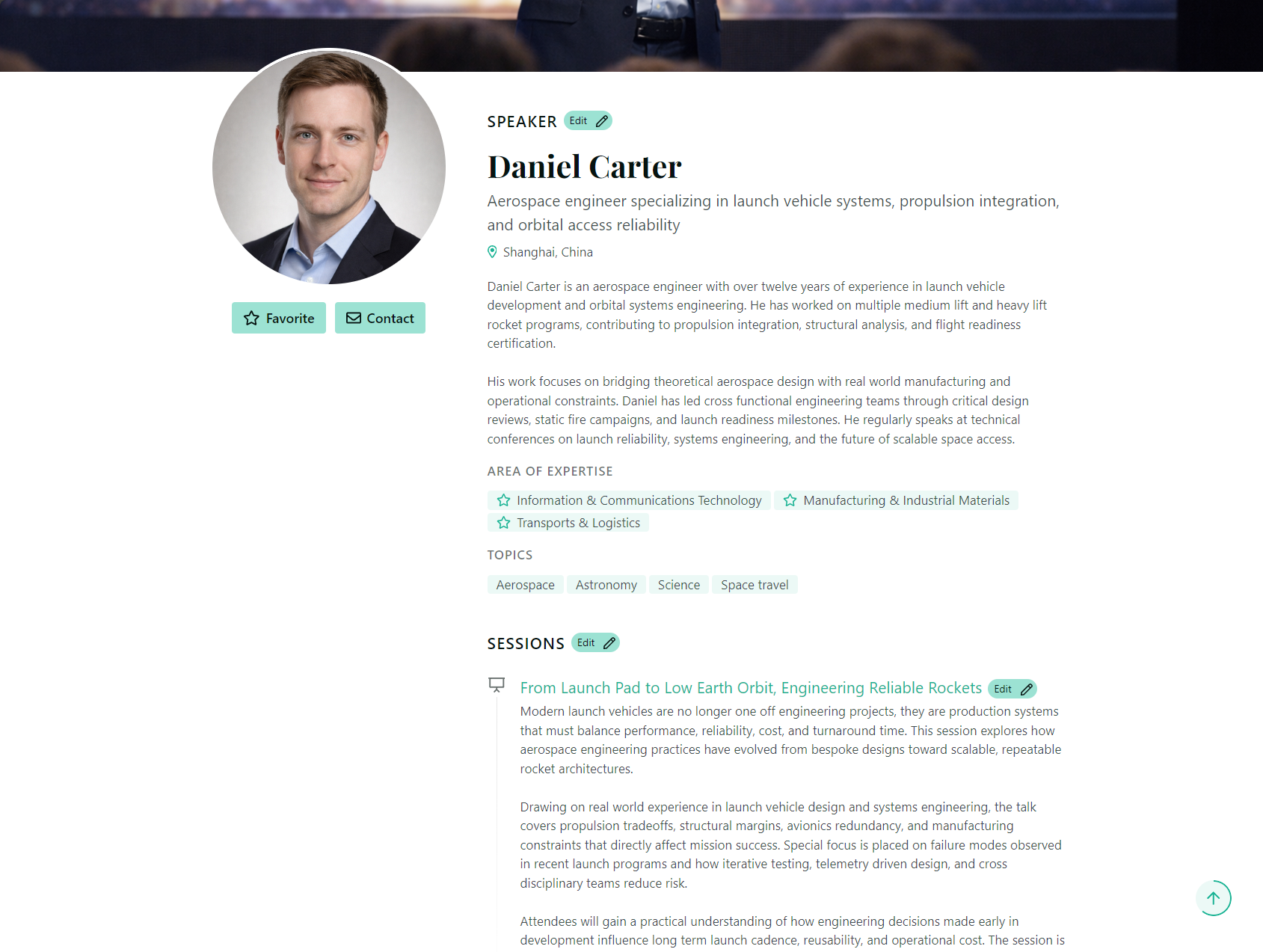 When you enable your public profile and fill in all the information we've covered, this is what event organizers and other speakers will see when they discover you.