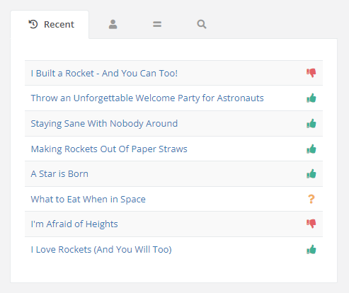 On the right is a box with several useful tabs. The default tab is Recent. You can use it to keep track of your past session evaluations, but it has an additional purpose: you can click on any of the sessions to reopen them and potentially change your evaluation.
